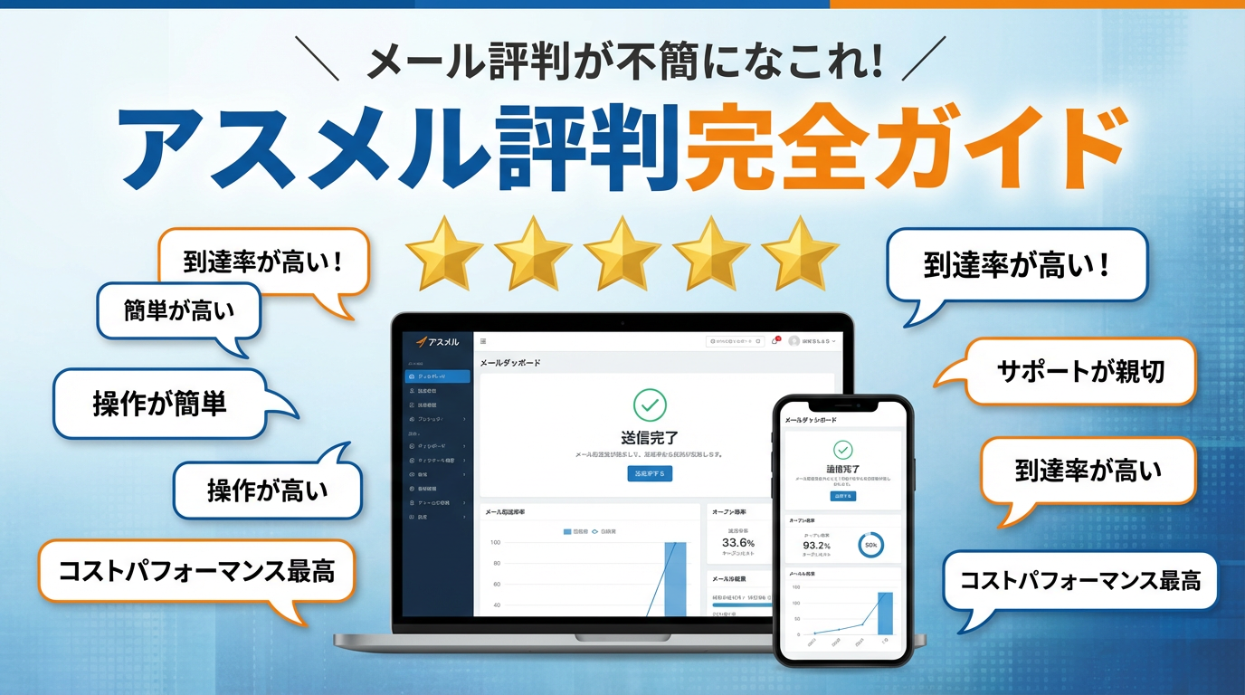 メール配信ツールの導入を検討する際、実際の利用者の評判や口コミは非常に重要な判断材料になります。この記事では、月額3,333円で無制限配信が魅力のアスメルについて、実際の利用者の声、メリット・デメリット、そして他のツールとの比較まで、中立的な立場から徹底的に解説します。