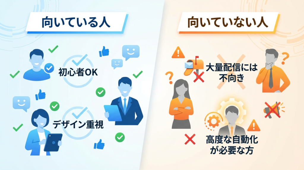 - 小規模〜中規模の配信:月間数千〜数万通の配信に最適