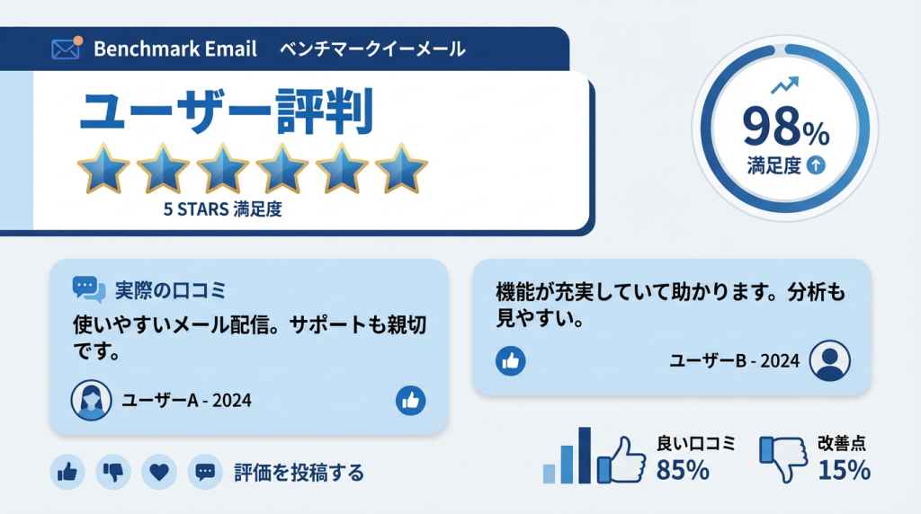 そんな疑問をお持ちではありませんか?本記事では、実際のユーザー評価・口コミを徹底分析し、Benchmark Emailのメリット・デメリット、料金プラン、他社との比較まで詳しく解説します。