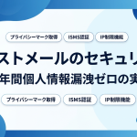 メール・電話(平日10:00〜17:00)・チャット・オンライン個別相談会の4種類のサポートを全プラン・トライアル中も無料で提供。ISMS認証・プライバシーマーク取得済みで、セキュリティ面も安心です。