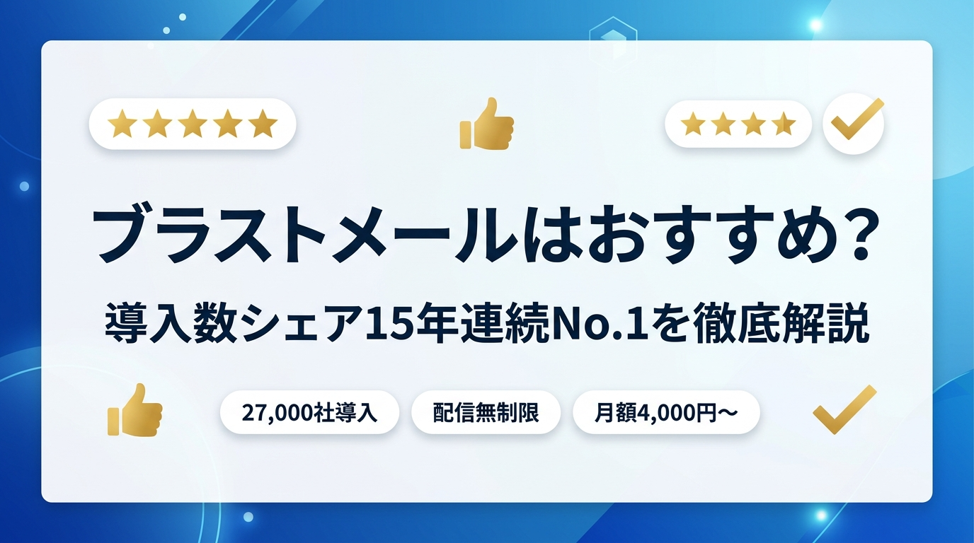 メルマガ・一斉メール配信ツールを検討中で「ブラストメールって実際どうなの?」と気になっている方へ。本記事では、導入数シェア15年連続No.1を誇るブラストメールの特徴・料金・機能・口コミを徹底解説します。向いている人・向いていない人も正直にまとめたので、ぜひ参考にしてください。
