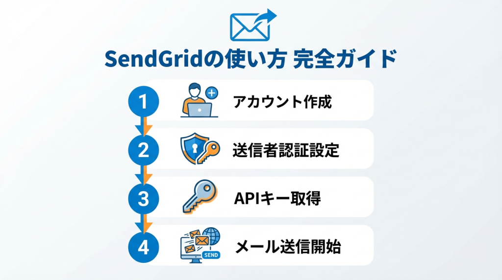 それでは、SendGridの具体的な使い方を、初心者の方にもわかるように4つのステップに分けて解説していきます。