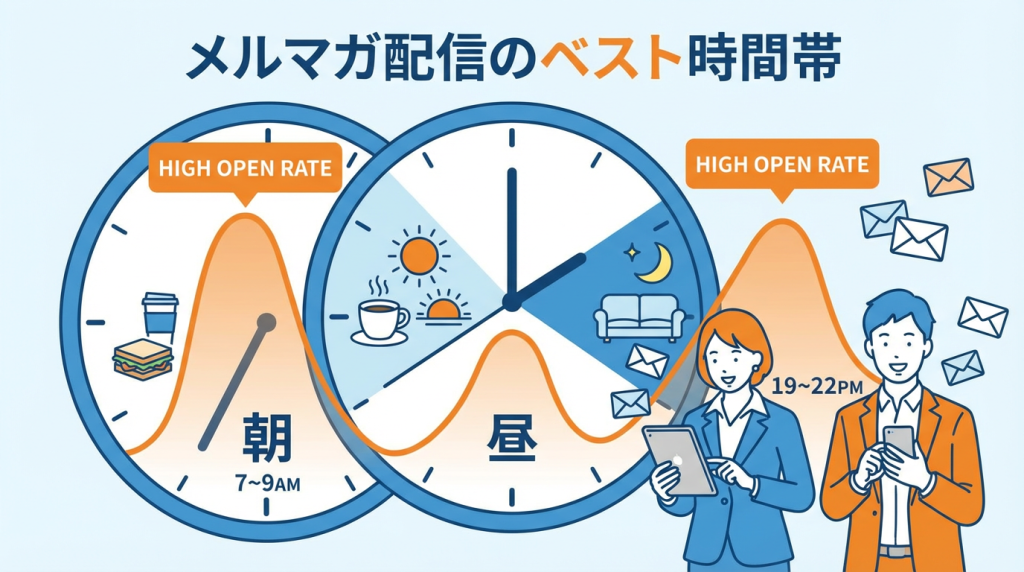 💡 BtoB配信のコツ:午前中〜お昼の時間帯に配信するのがベスト。特に12時台は休憩時間でメールをチェックする人が多いため、高い開封率が期待できます。