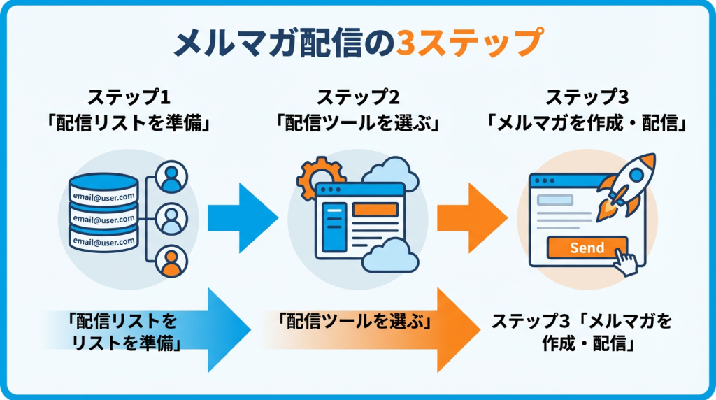 メルマガを効果的に運用するには、事前準備が重要です。闇雲に始めるのではなく、以下の3つのステップで準備を進めましょう。