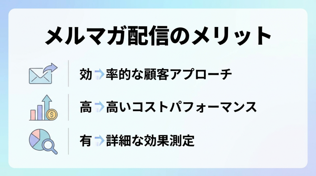 メルマガ配信システムを選ぶ際は、以下の3つのポイントを重視しましょう: