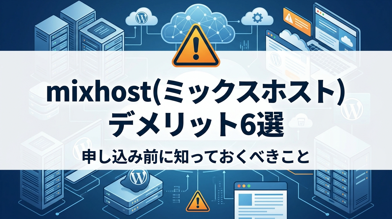 「mixhost(ミックスホスト)って実際どうなの?デメリットも知りたい」そんな疑問をお持ちではないでしょうか。高速・高機能で人気のmixhostですが、申し込み前にデメリットもしっかり把握しておくことが大切です。この記事では、mixhostのデメリットを正直にまとめ、それでも選ぶべき人・そうでない人も解説します。
