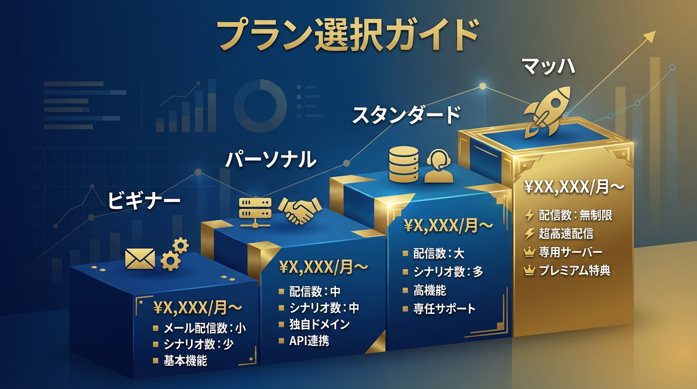 この記事では、各プランの料金・機能の違い、あなたに最適なプランの選び方、他社ツールとの比較まで、メール配信システム紹介者の視点で詳しく解説します。