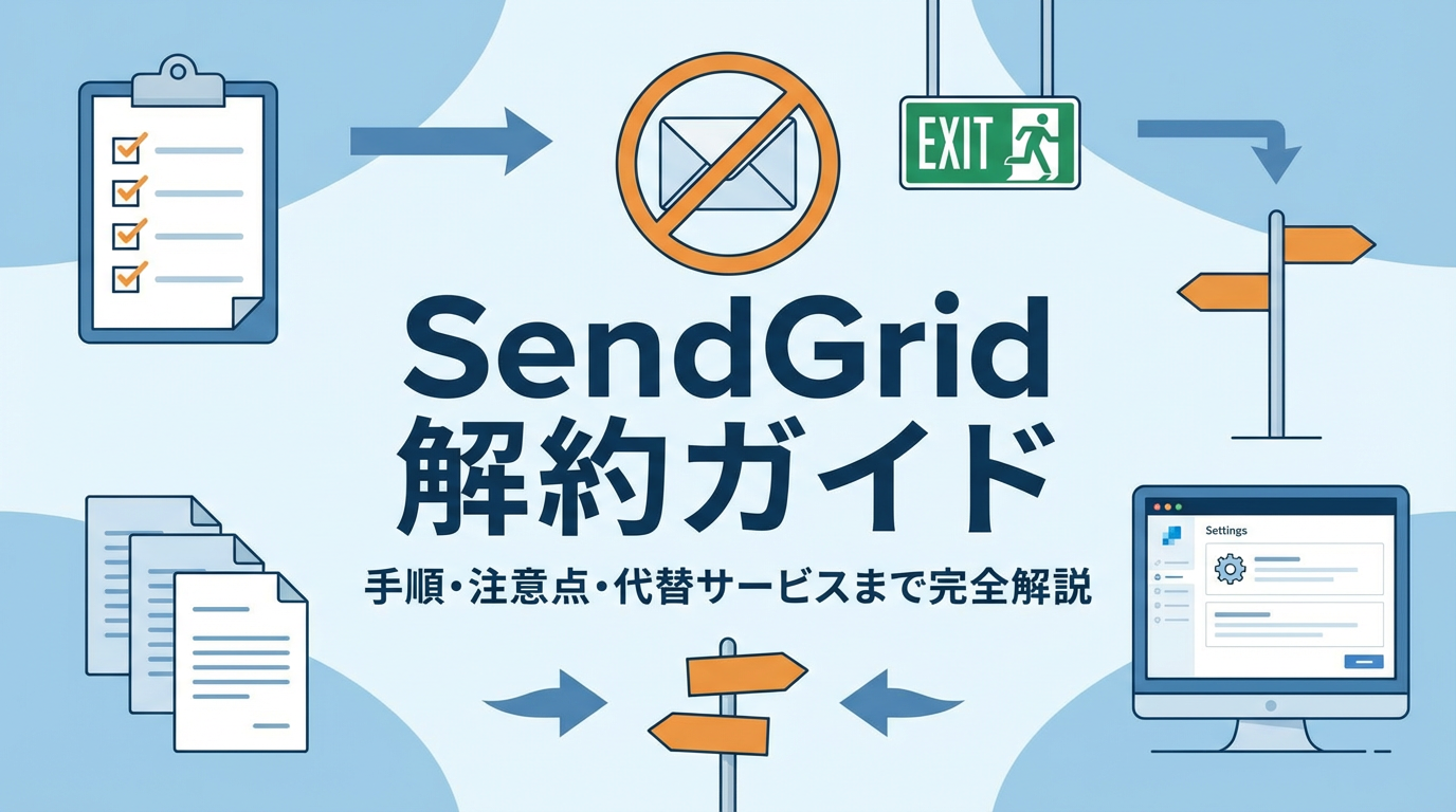この記事では、SendGridの解約方法を2つのパターンに分けて詳しく解説。さらに解約前の注意点、データバックアップの方法、おすすめの代替サービスまで完全網羅します。後悔しない解約のために、ぜひ最後までお読みください。