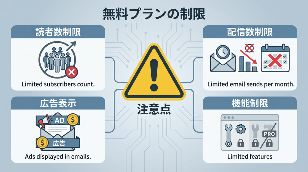 無料プランでは配信数や読者数に上限があります。上限に達した場合: