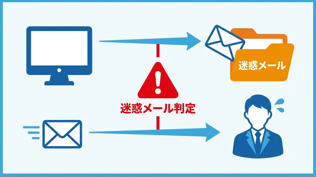 実は、受信側のシステムは「同じ内容を大量に一斉送信するメール」をスパムの特徴として認識します。なぜなら、スパム業者が使う典型的な手法だからです。