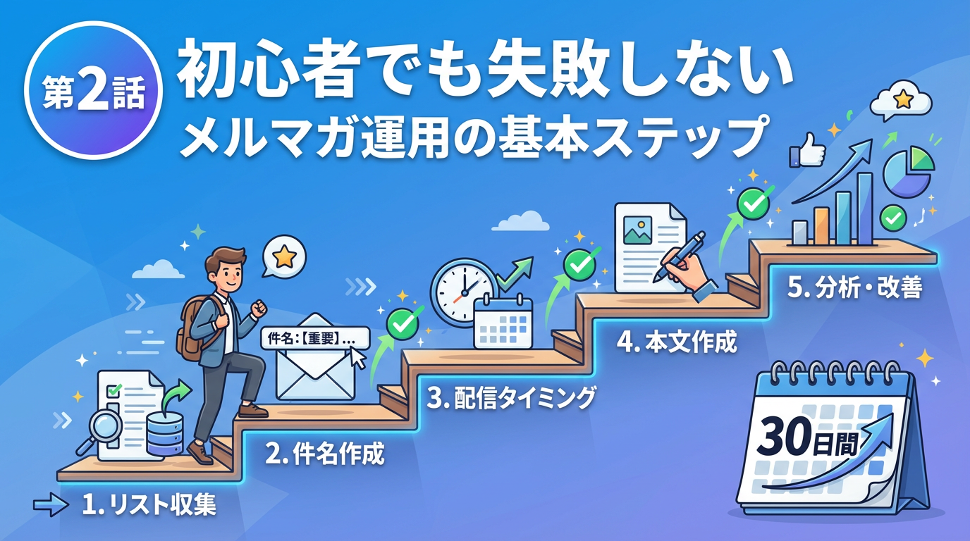 💡 前回の記事で「メルマガが必要な理由」が分かりました。今回は「何から始めればいいか」を具体的に解説します!