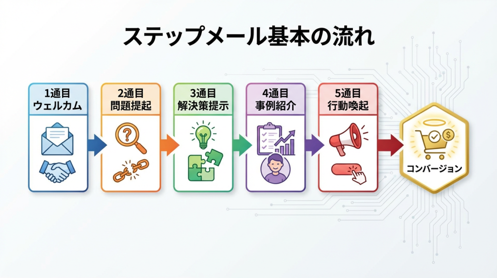 - ステップメールの基本構成|1通目〜5通目の役割