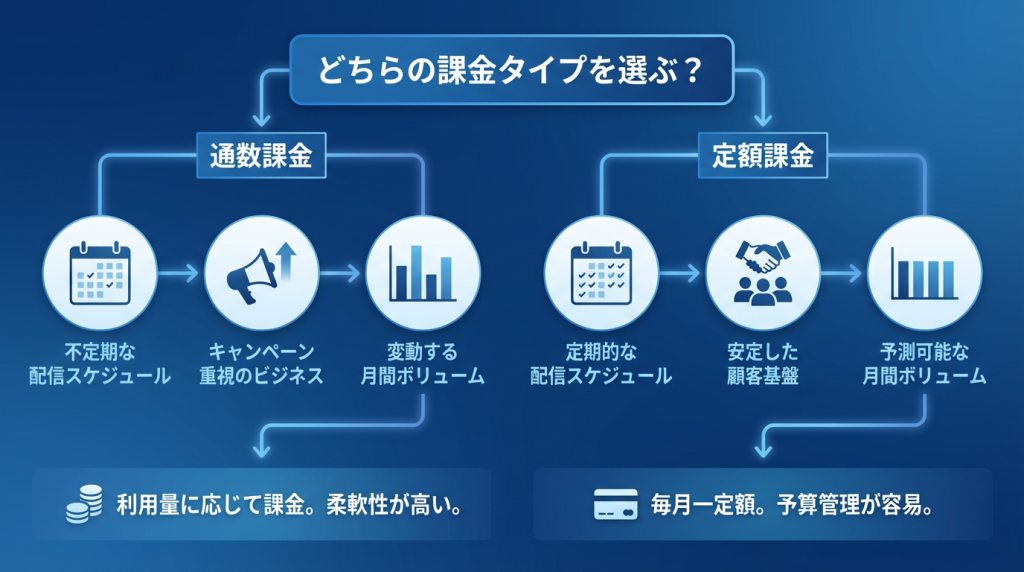 - 定額課金:定期配信・大量配信する場合におすすめ