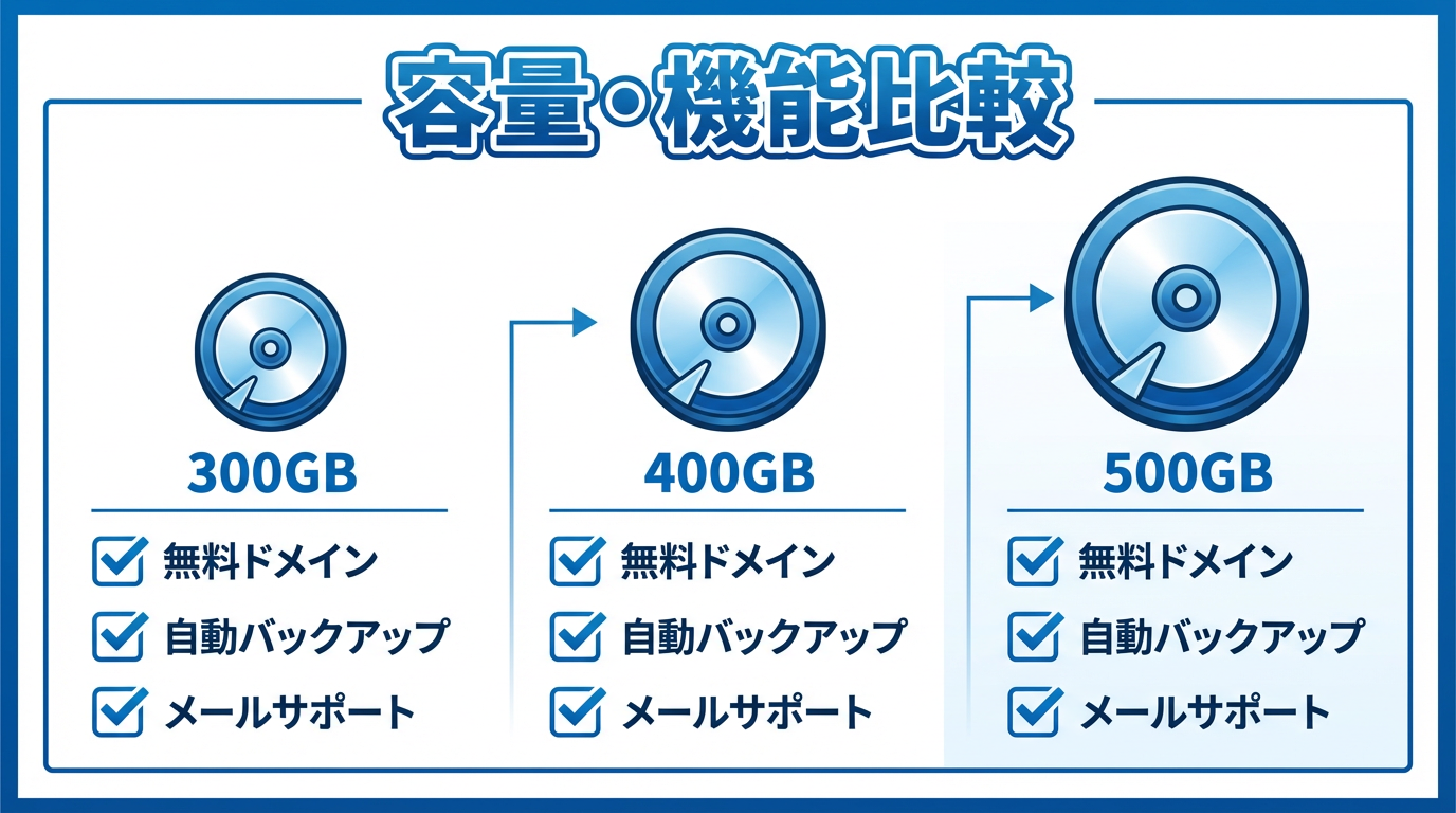 エックスサーバーの3つのプランの主な違いは以下の5点です。