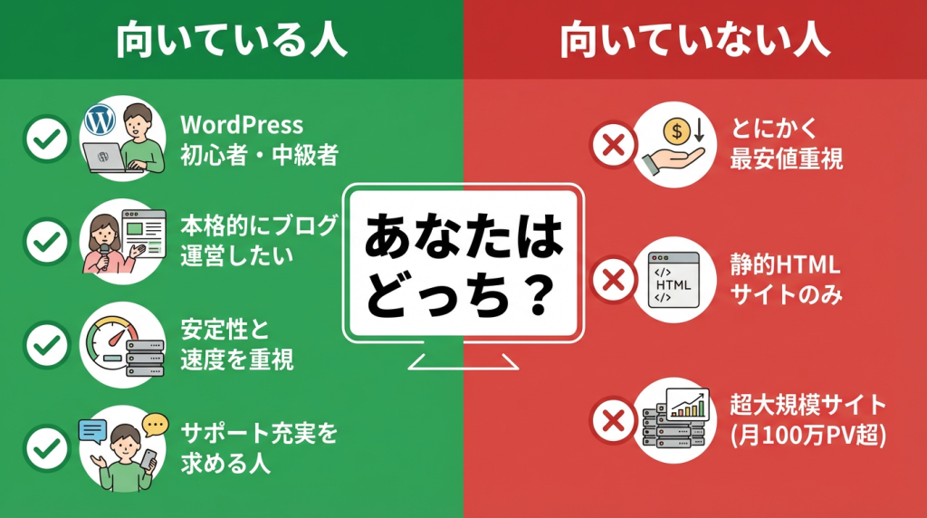 料金だけでなく、そもそも「エックスサーバーが自分に合っているか?」も重要です。
