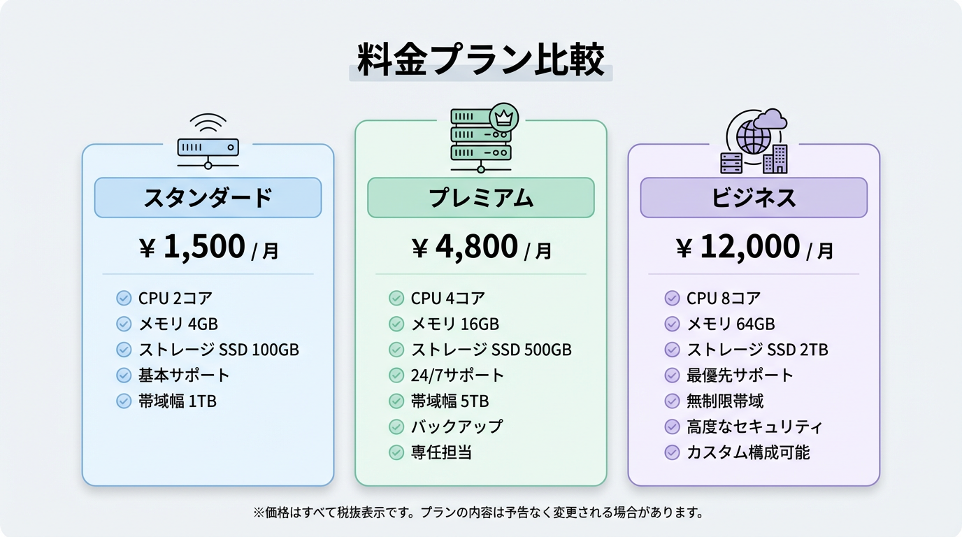 ただし、性能・安定性・サポートの質を考慮すると、コストパフォーマンスは非常に高いと言えます。