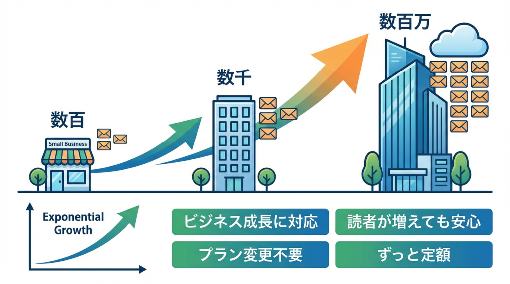 読者数が増えてもプラン変更不要で、成長に合わせてスムーズに拡大できます。